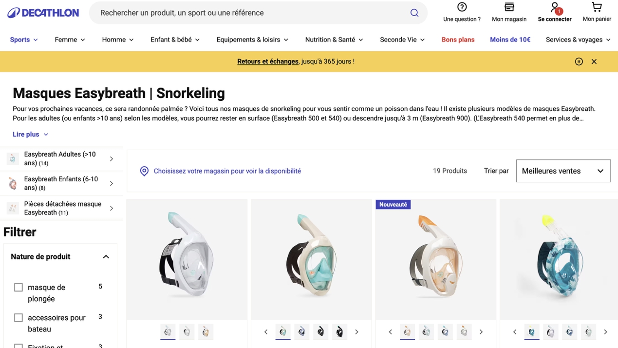Easybreath浮潛面罩的核心創(chuàng )新在于,它讓初學(xué)者也能像在陸地一樣自然呼吸,輕松地擁抱水下世界。這是一個(gè)為“體驗”而生的產(chǎn)品。迪卡儂沒(méi)有將它簡(jiǎn)單地放在官網(wǎng)龐大的產(chǎn)品目錄中,而是為它創(chuàng )建了一個(gè)專(zhuān)屬的數字空間。后綴在這里起到了畫(huà)龍點(diǎn)睛的作用。